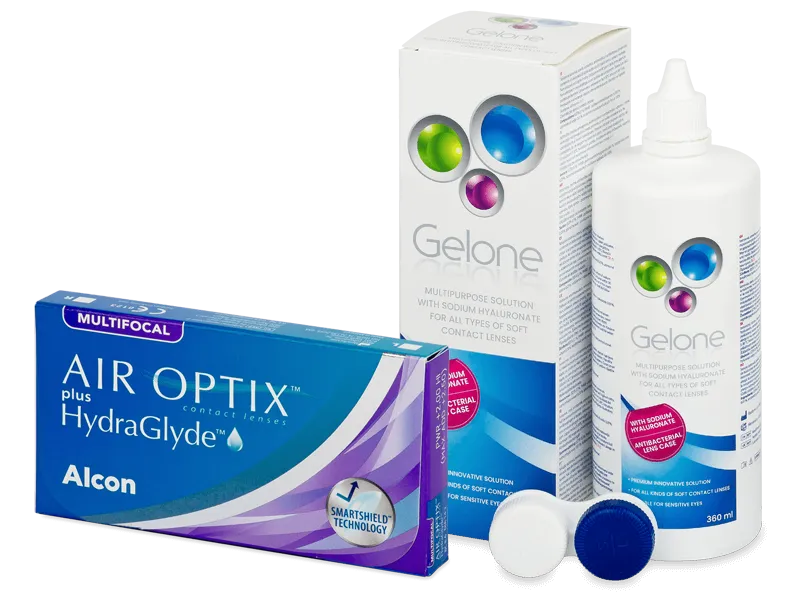 Air Optix plus HydraGlyde Multifocal (6 lentillas) + Líquido Gelone 360 ml